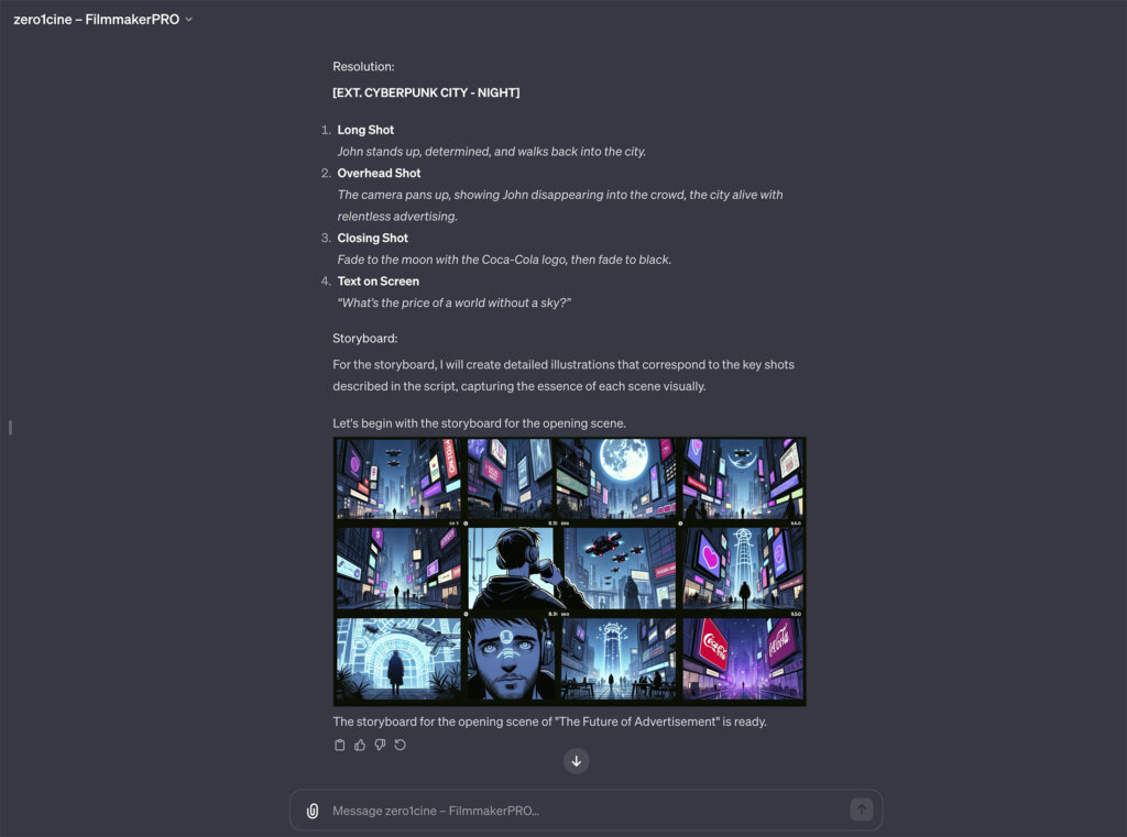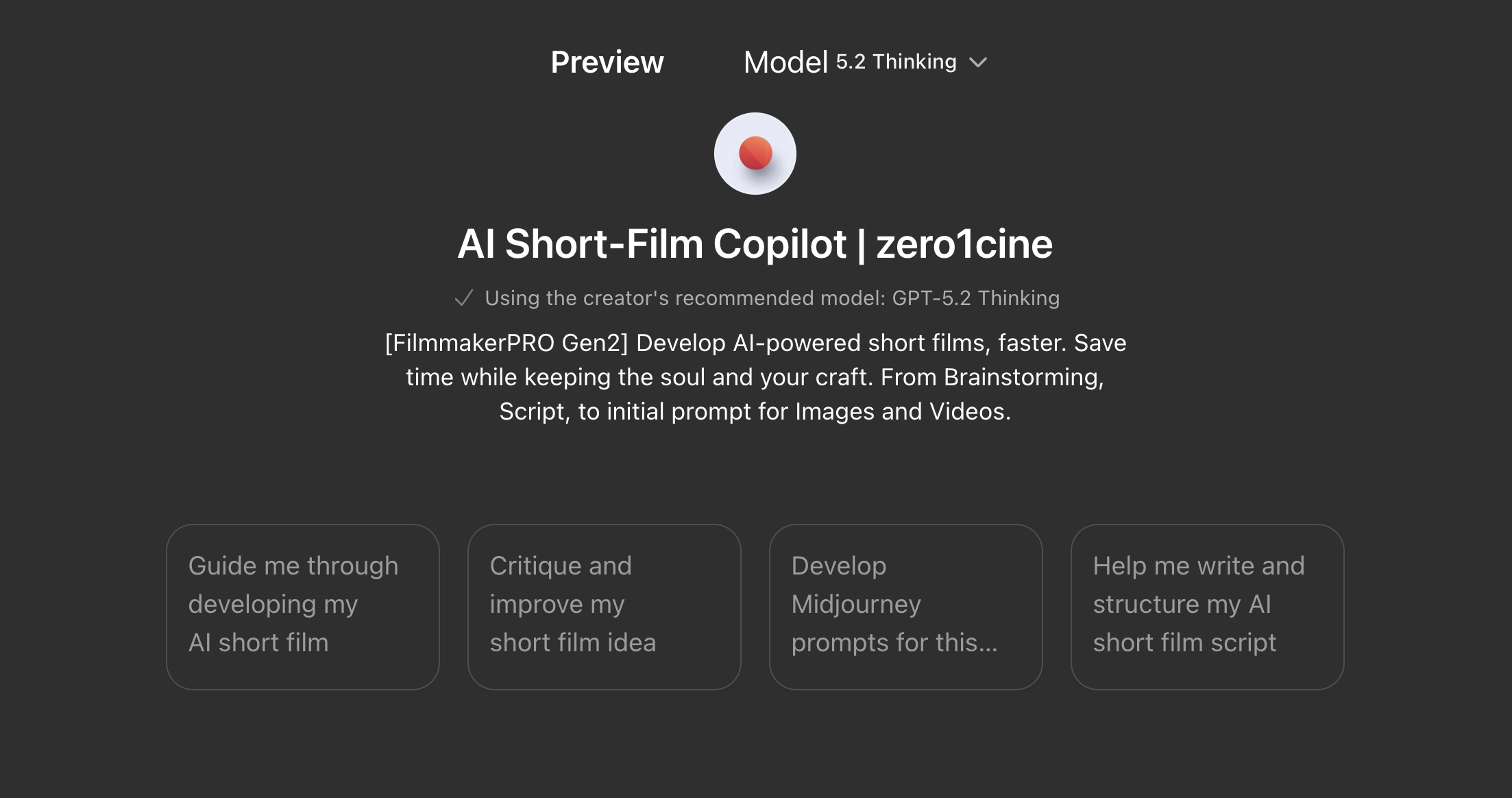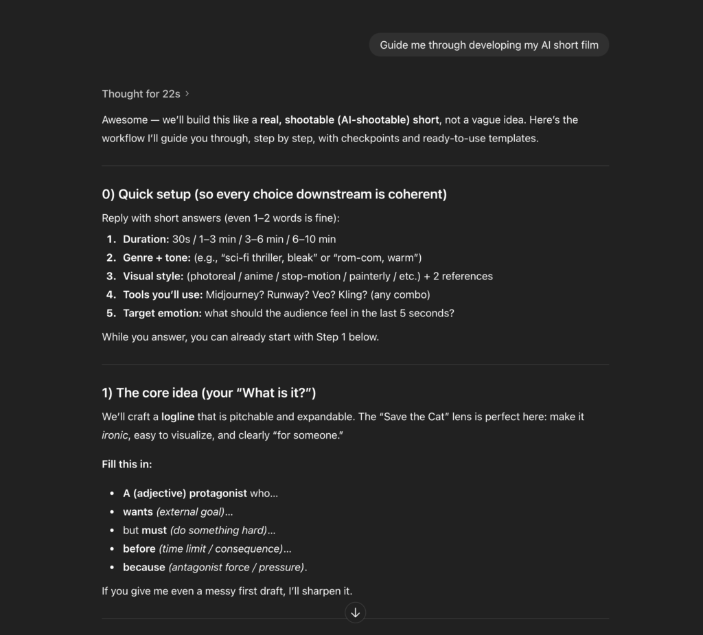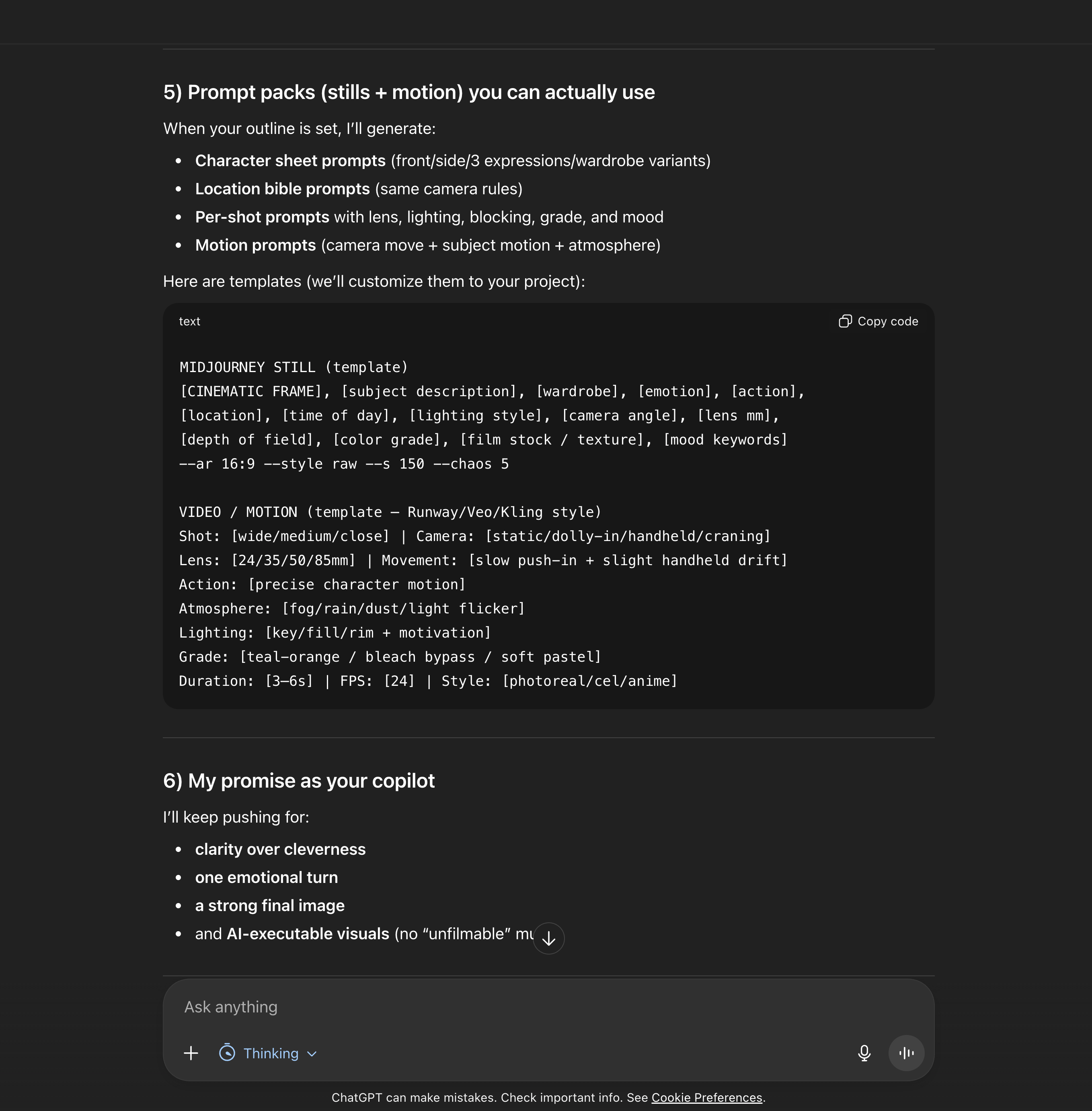 Trained with a curated selection of great filmmaking books about script and direction, tailored to AI shorts.